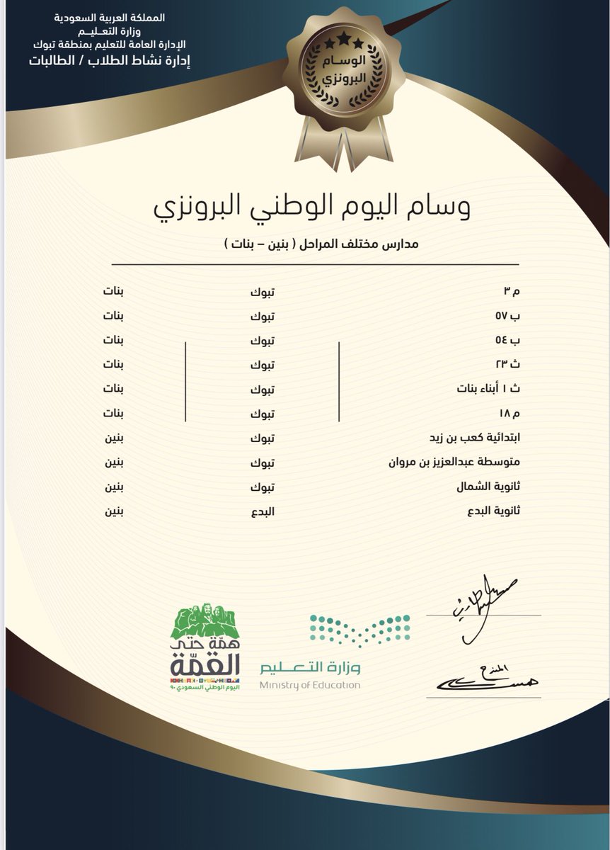 تحت شعار هم ة حتى القم ة تعليم تبوك يعتمد برنامج الاحتفاء باليوم الوطني ال90