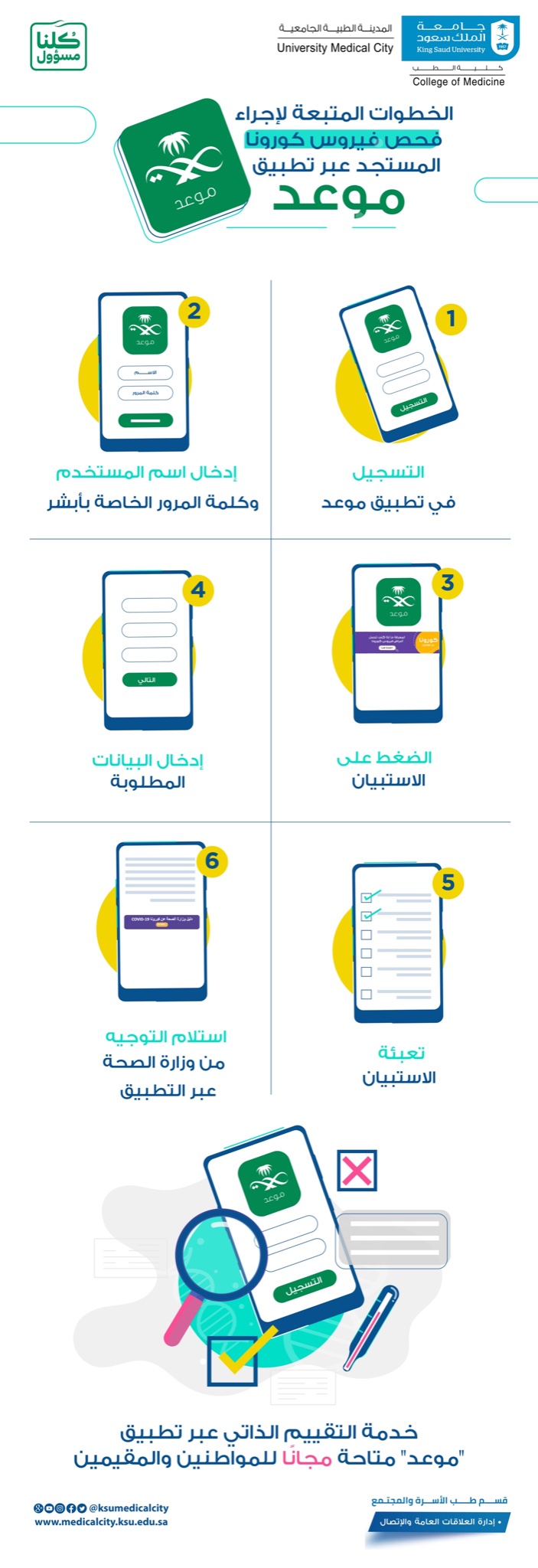 الـ مـديـ نـ ة الـ طبـ يـ ة A Twitter الخطوات المتبعة لإجراء فحص فيروس كورونا المستجد عبر تطبيق موعد Fcmksu صوم وصحة جامعة الملك سعود المدينة الطبية الجامعية كلية الطب Https T Co 8xgpifyhcb