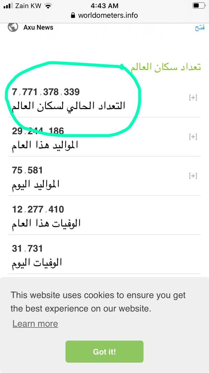 مبارك المطيري On Twitter عدد سكان العالم 7 771 378 339 عدد المصابين فيروس كورونا المستجد 182 429 عدد الوفيات 7 158 شخص علمتني كورونا ان النسبة المئوية للمرضى حول العالم ونسبة الإصابة 0 002347 ونسبة الوفاة من سكان