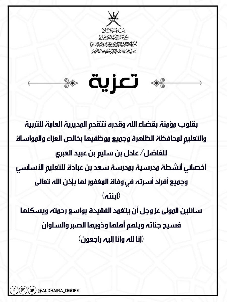 عظم الله اجركم واحسن عزائكم وغفر لميتكم وأجمل ما قيل في العزاء زيادة