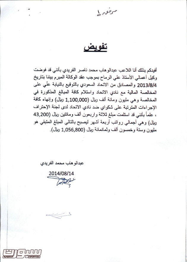 جريدة الرياض الاحتراف الفريدي فوض الرماح بتوقيع المخالصة وشكواه لا تمنع الاتحاد من التسجيل