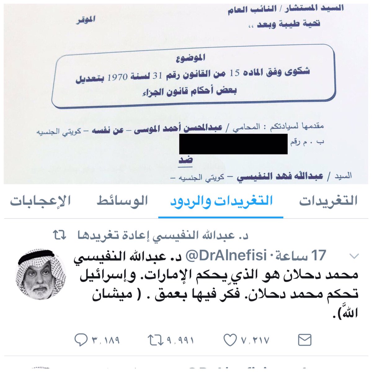 شاهين السليطي On Twitter الوضع الأمني في الخليج يموج و البلشتية يلاحقون الشرفاء على تغريدة تم اليوم استدعاء د عبدالله النفيسي على خلفية تغريدة عمرها اكثر من سنتين يقول فيها بان محمد