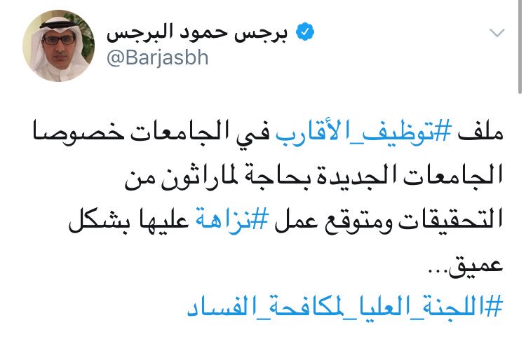 توظيف السعودية On Twitter البرجس ملف توظيف الأقارب في الجامعات بحاجة إلى مارثون من التحقيقات ويتوقع أن تعمل عليها نزاهة بشكل عميق Barjasbh