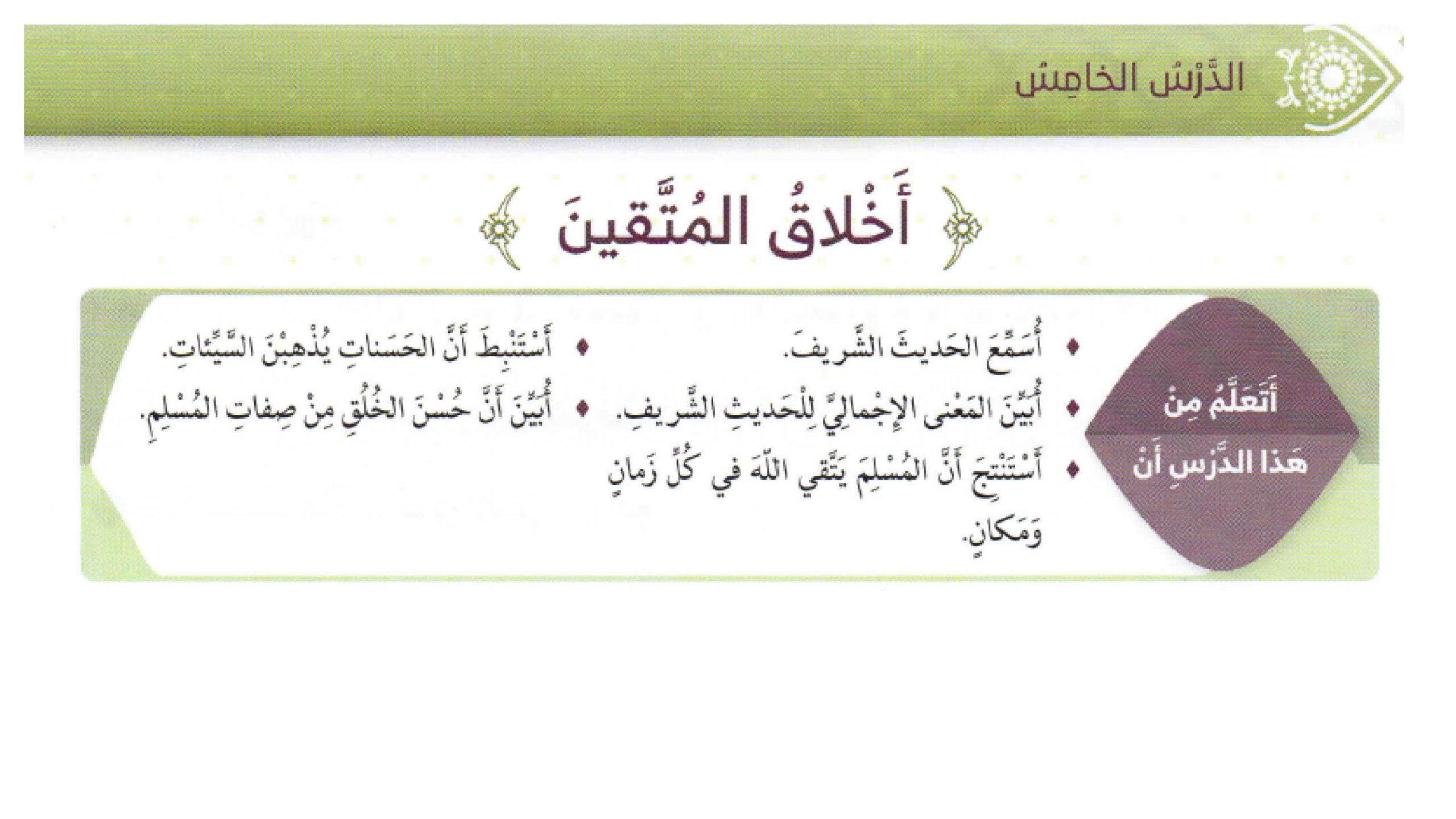 حل درس أخلاق المتقين تربية إسلامية صف رابع فصل ثاني مدرستي الامارتية