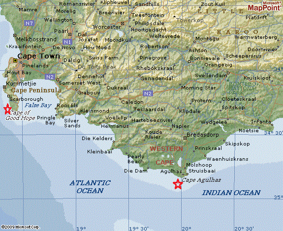 خريطة توضح طريق رأس الرجاء الصالح