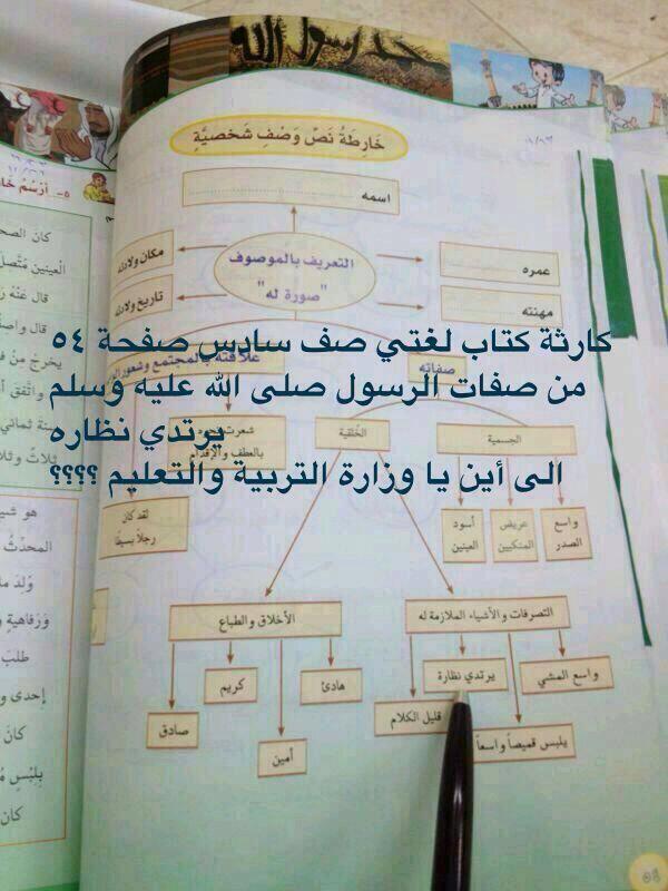 صفه خلقية ملازمة للرسول يرتدي نظارة في منهج لغتي صف سادس تثير غضب مغردو تويتر صحيفة بقعاء الإلكترونية