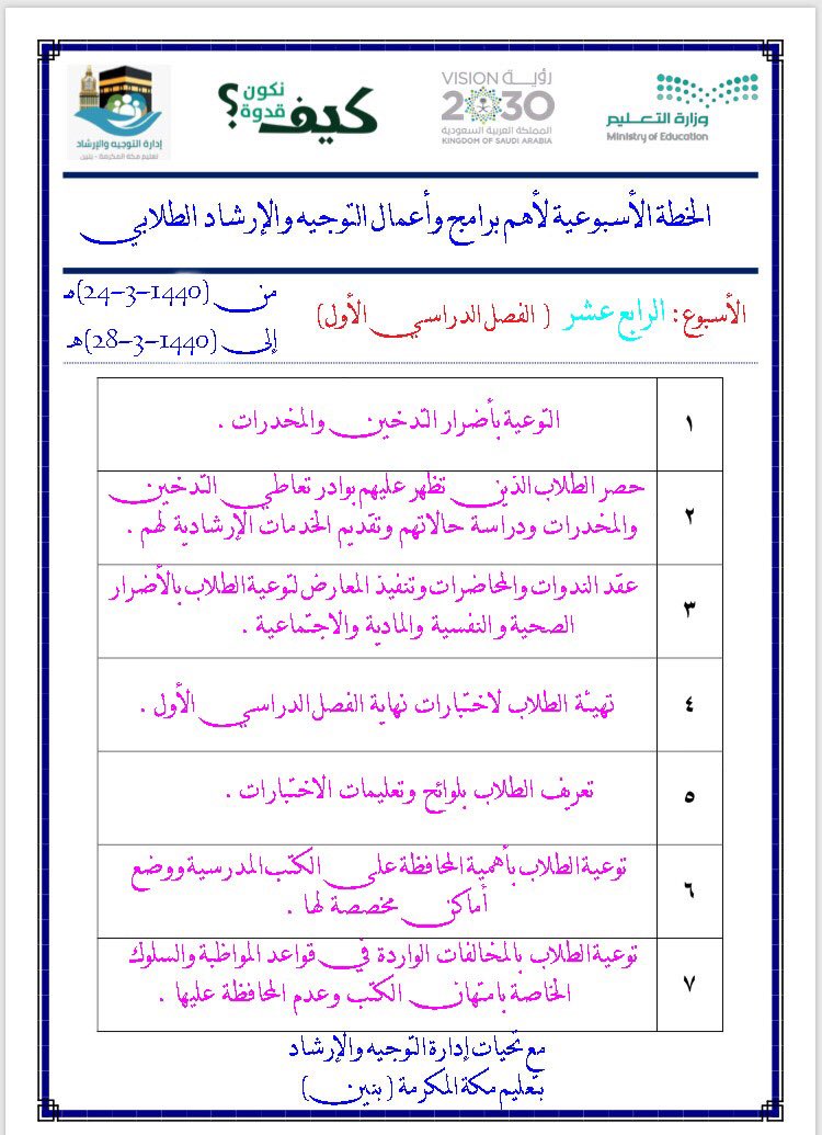 ملتقى الإرشاد الطلابي A Twitter مميز الجدول الأسبوعي لأعمال التوجيه والإرشاد خلال الفصل الدراسي الأول Https T Co Zznghrilku ملف متابعة تنفيذ جدول أعمال الإرشاد الطلابي Https T Co 5c3fa7087i إدارة التوجيه والإرشاد في الجوف Ershadjouf