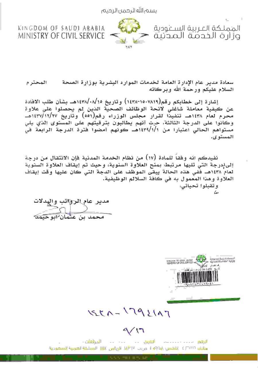 الأخبار الصحية On Twitter في رد على إستفسار لوزارة الصحة وزارة الخدمة يبقى الموظف على نفس الدرجة في حال عدم صرف العلاوه