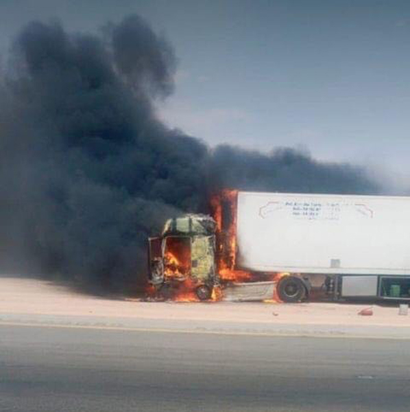 احتراق شاحنة أردني في عرعر وكالة كرم الاخبارية